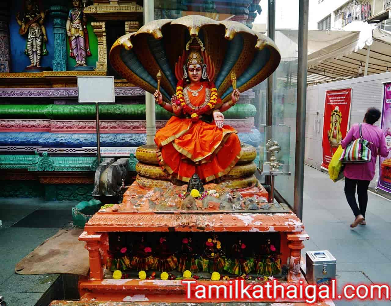 பின்பு, குழந்தையினைத் தூக்கிக் கொண்டு அம்மனைத் தரிசித்து விட்டு, ஊருக்கு கிளம்பி விட்டாள். மேனகா, கோயிலிலே ஒரு வாரம் தங்கி விரதமிருந்தாள்… ஏழாவது நாள் மேனகாவின் கனவில் வந்த அம்மன், “எதற்காக நீ இங்கு வந்திருக்கிறாய்?” என்று கேட்டாள்.